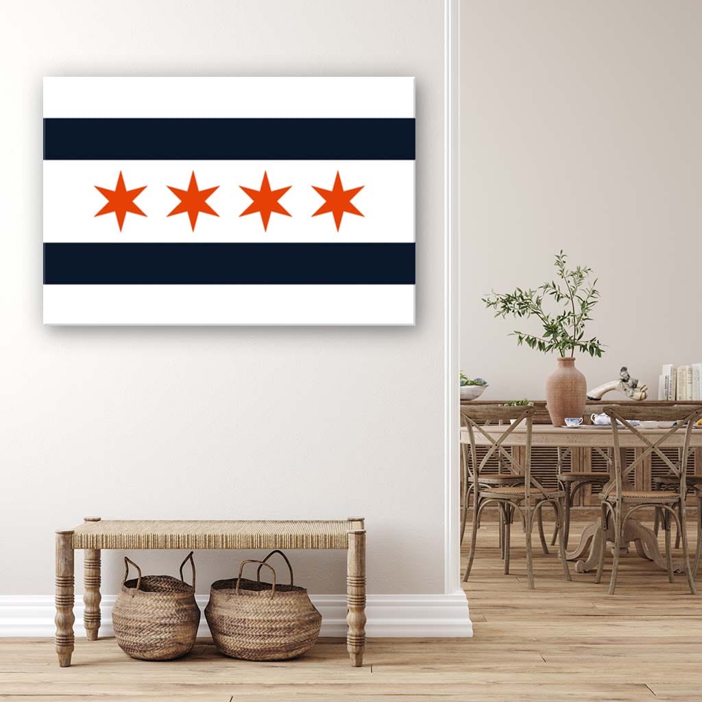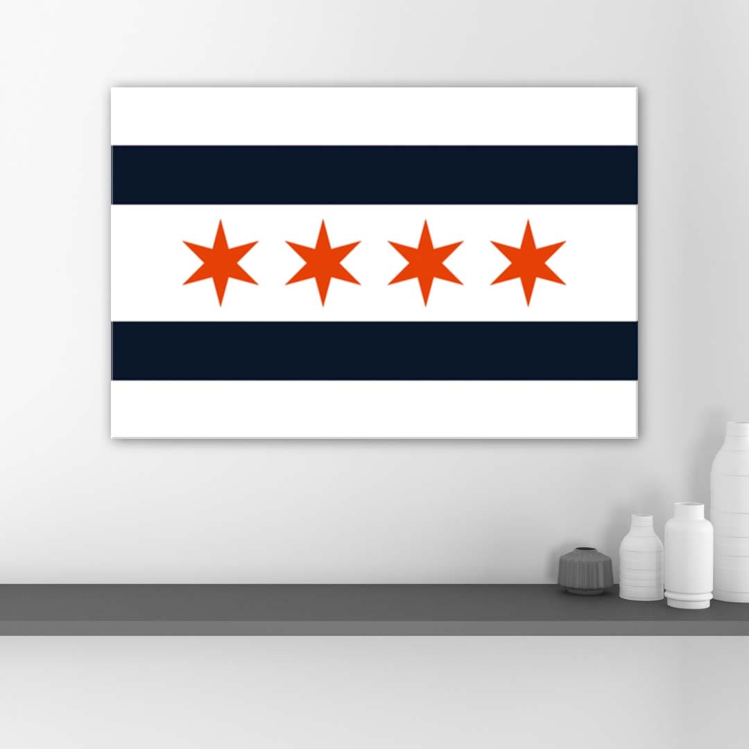 Honor the Windy City with style. This Navy & Orange Chicago Flag Canvas Wall Art Print showcases the iconic design that’s instantly recognizable and deeply revered—from Millennium Park to your living room. Built for those who love the city’s spirit, this print adds bold character and hometown pride to any space.
