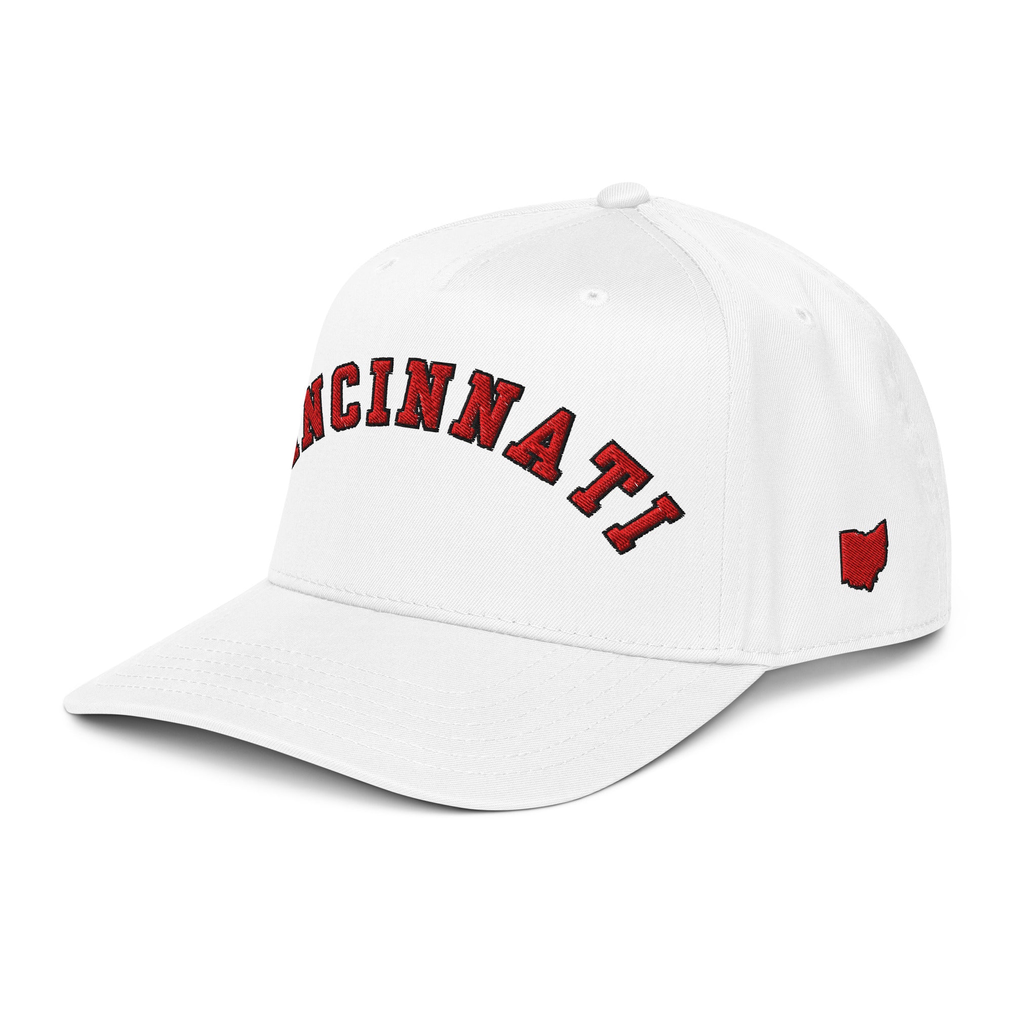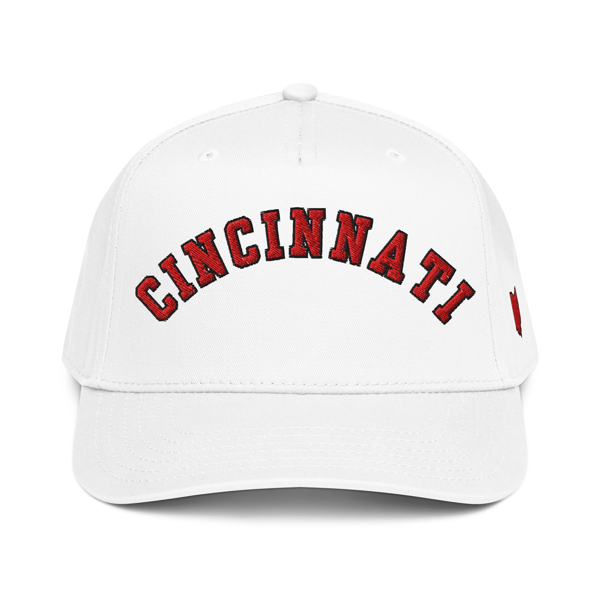 Curved Red Cincinnati Hat - White