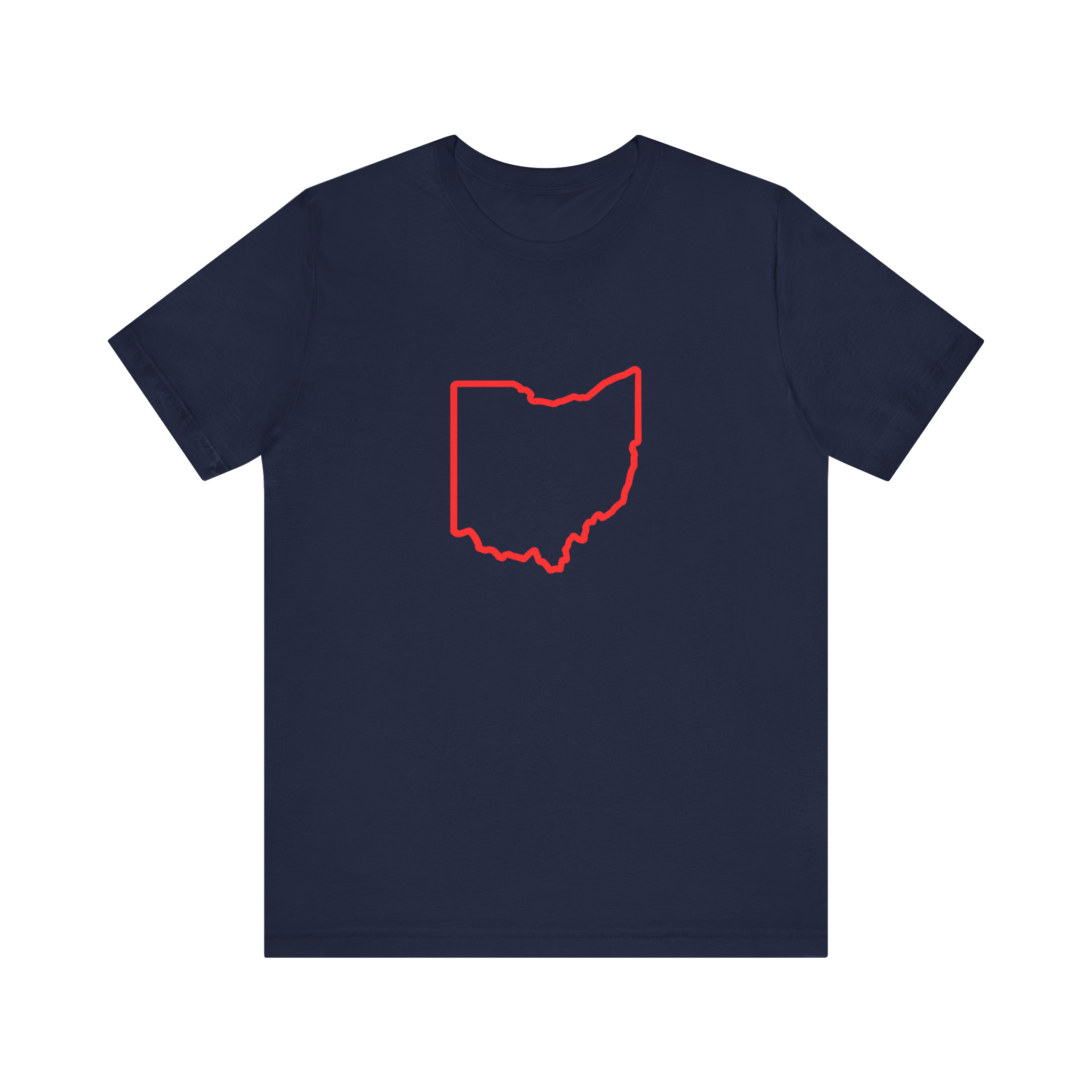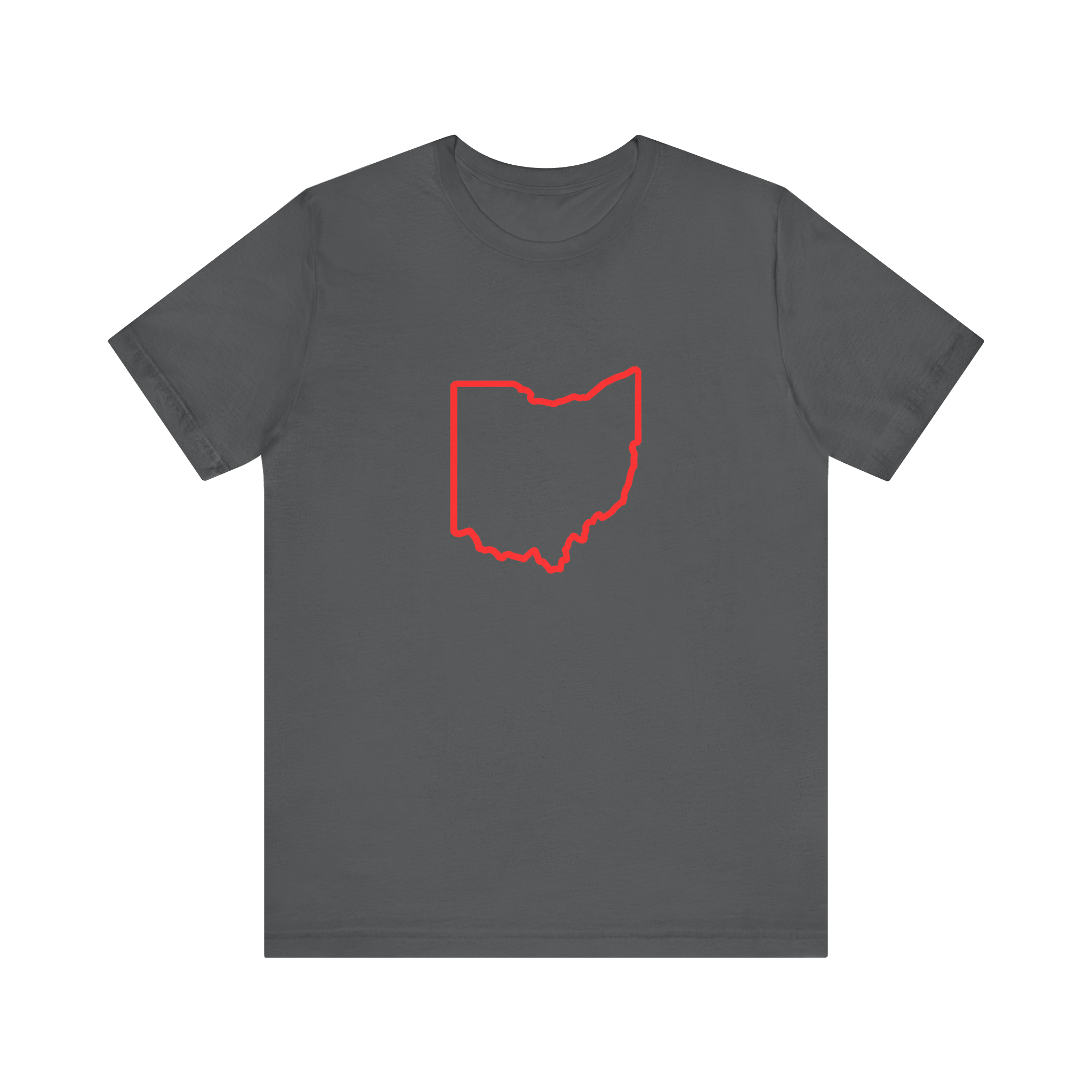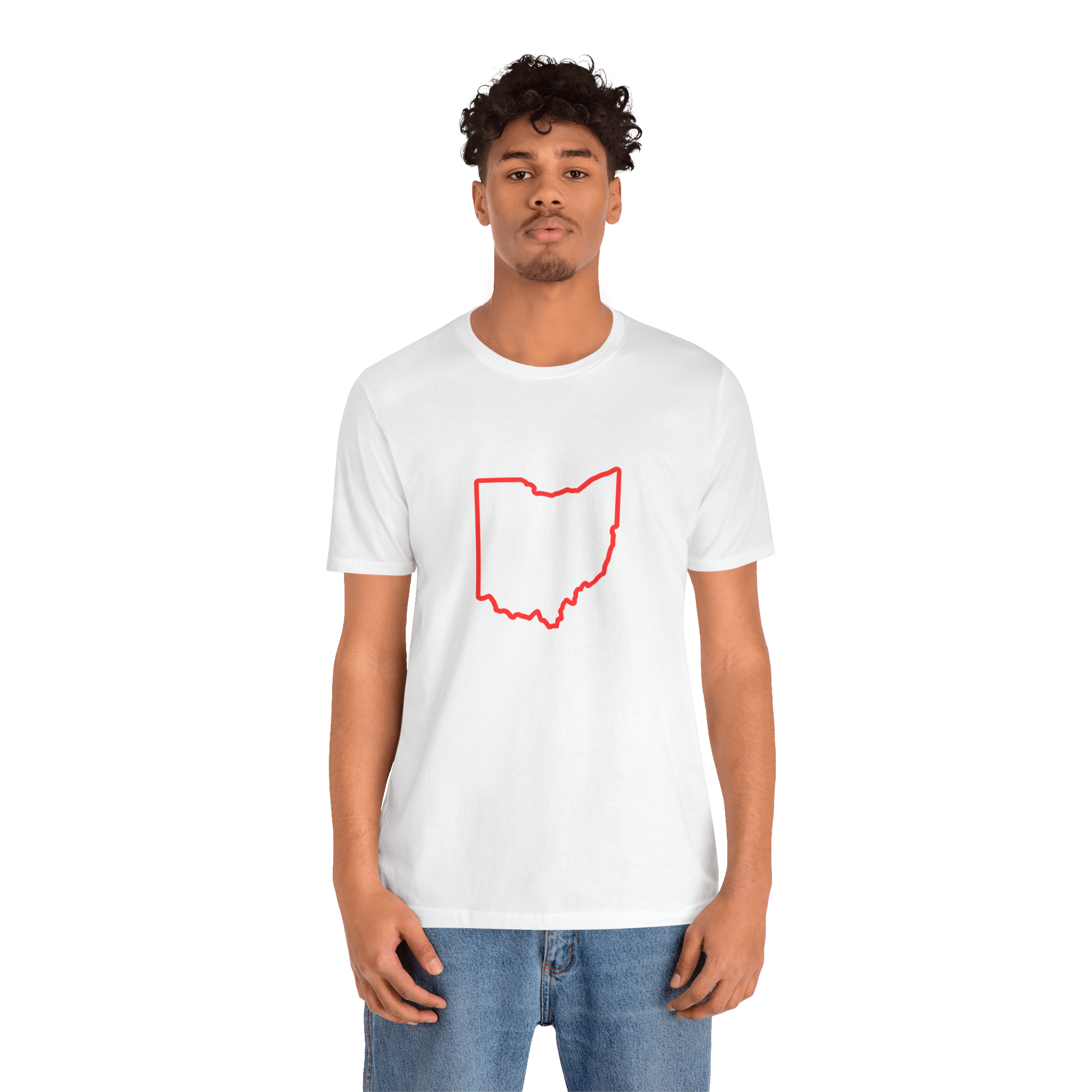 Classic hometown style with everyday comfort, the Red Ohio Outline T-Shirt features a subtle red Ohio outline over the chest on a lightweight 100% combed cotton tee. Ideal for casual wear, layering, or showing state pride year-round.