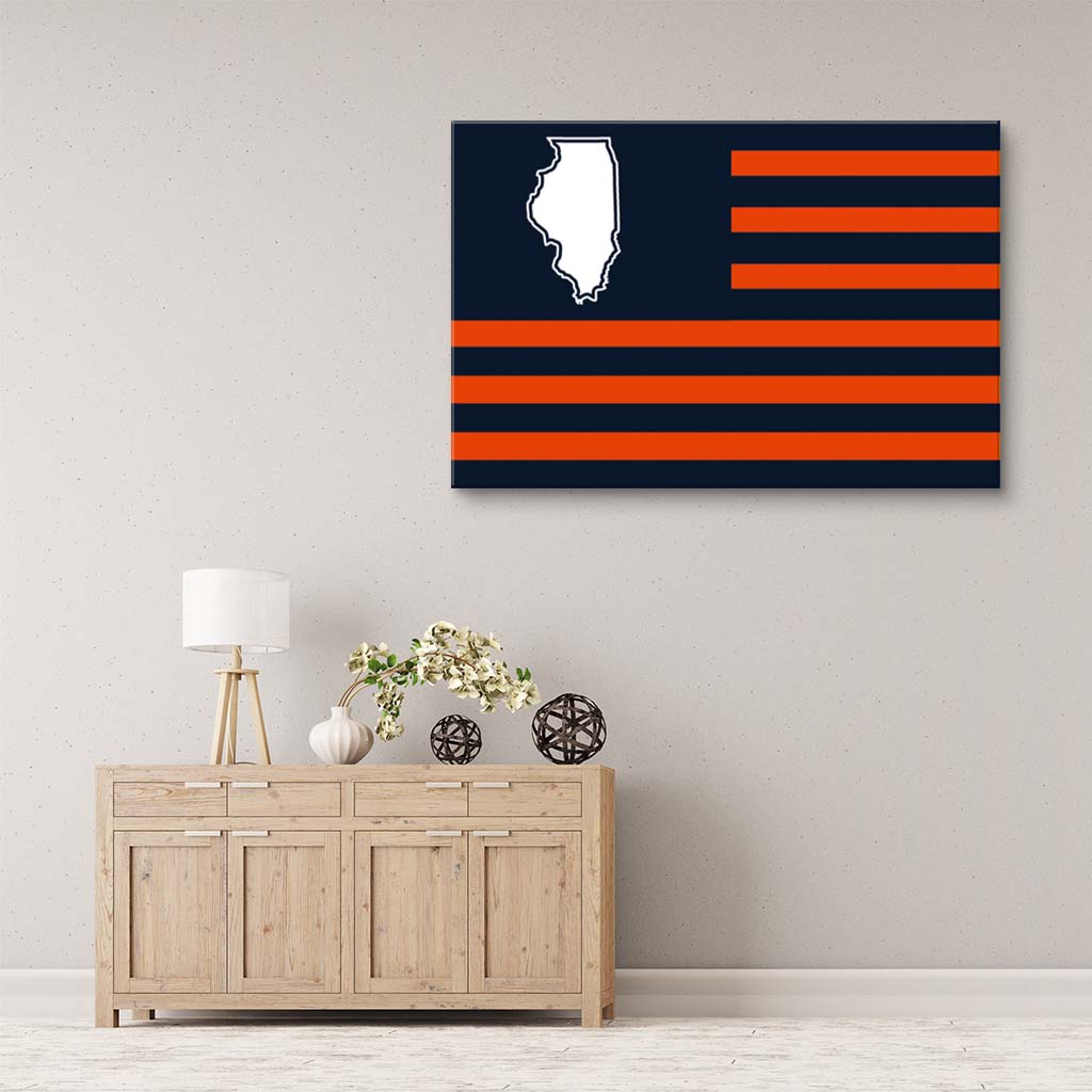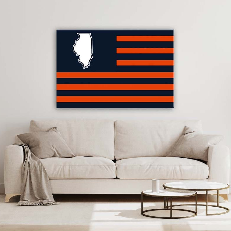 Show your Illinois pride in style with this Navy & Orange Illinois American Flag Canvas Wall Art Print. The bold monochrome design offers a modern twist on a classic symbol, making it the perfect statement piece for your home, office, or gift.