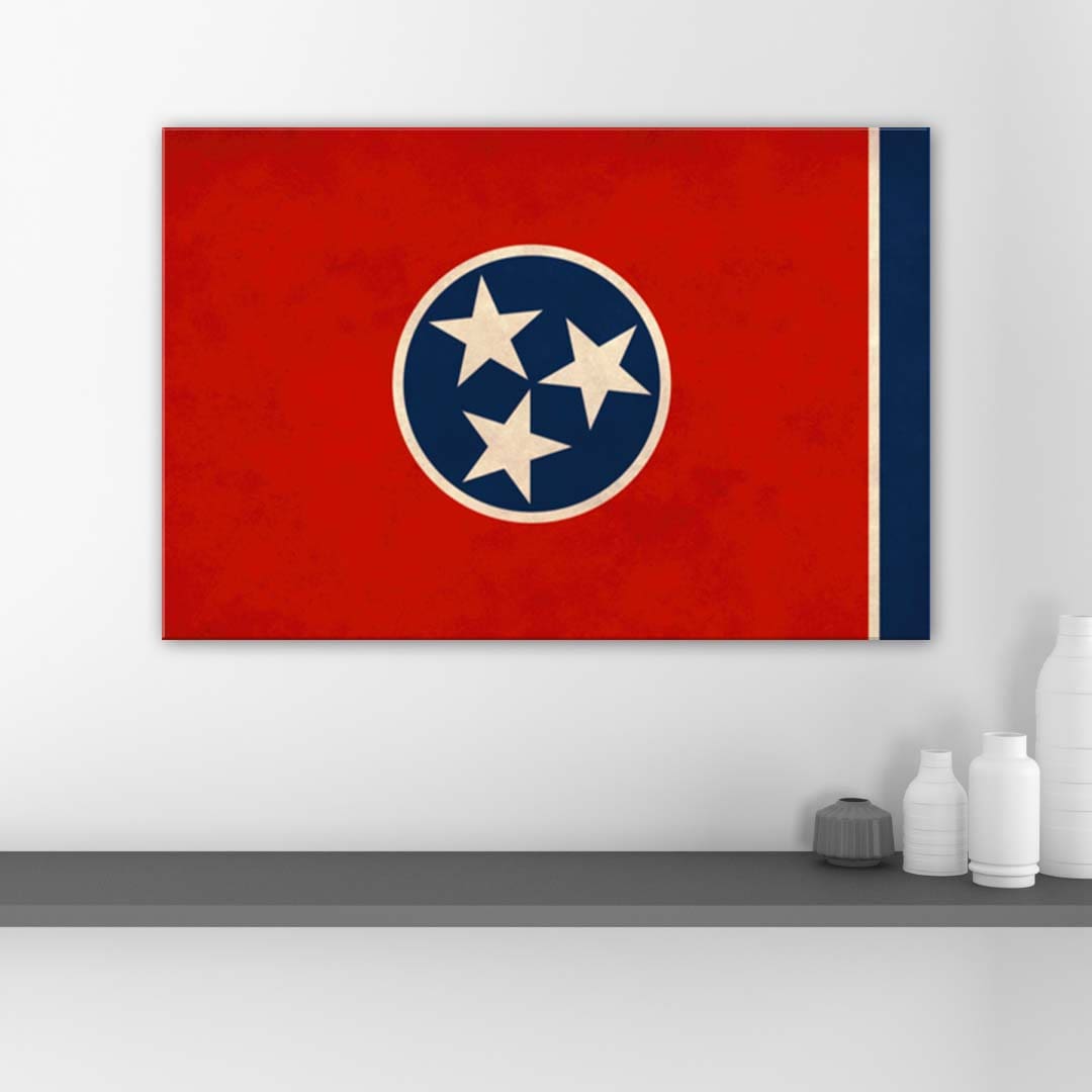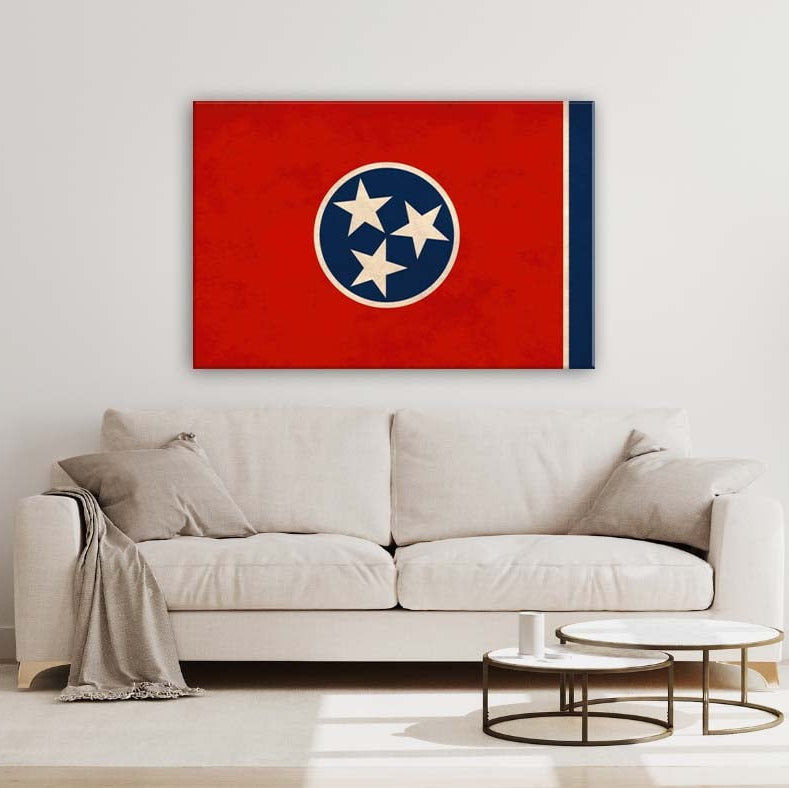 Bring the spirit of Tennessee to any room with our striking Tennessee Canvas Flag Art Print. Proudly honoring the iconic Tri-Star design, this gallery-quality canvas is a beautiful homage to the Volunteer State—perfect for homes, offices, or gifts for Tennessee lovers. The artwork is mounted on a canvas wrap frame with the option of a black, white or pecan frame, giving it a modern, gallery-style finish.