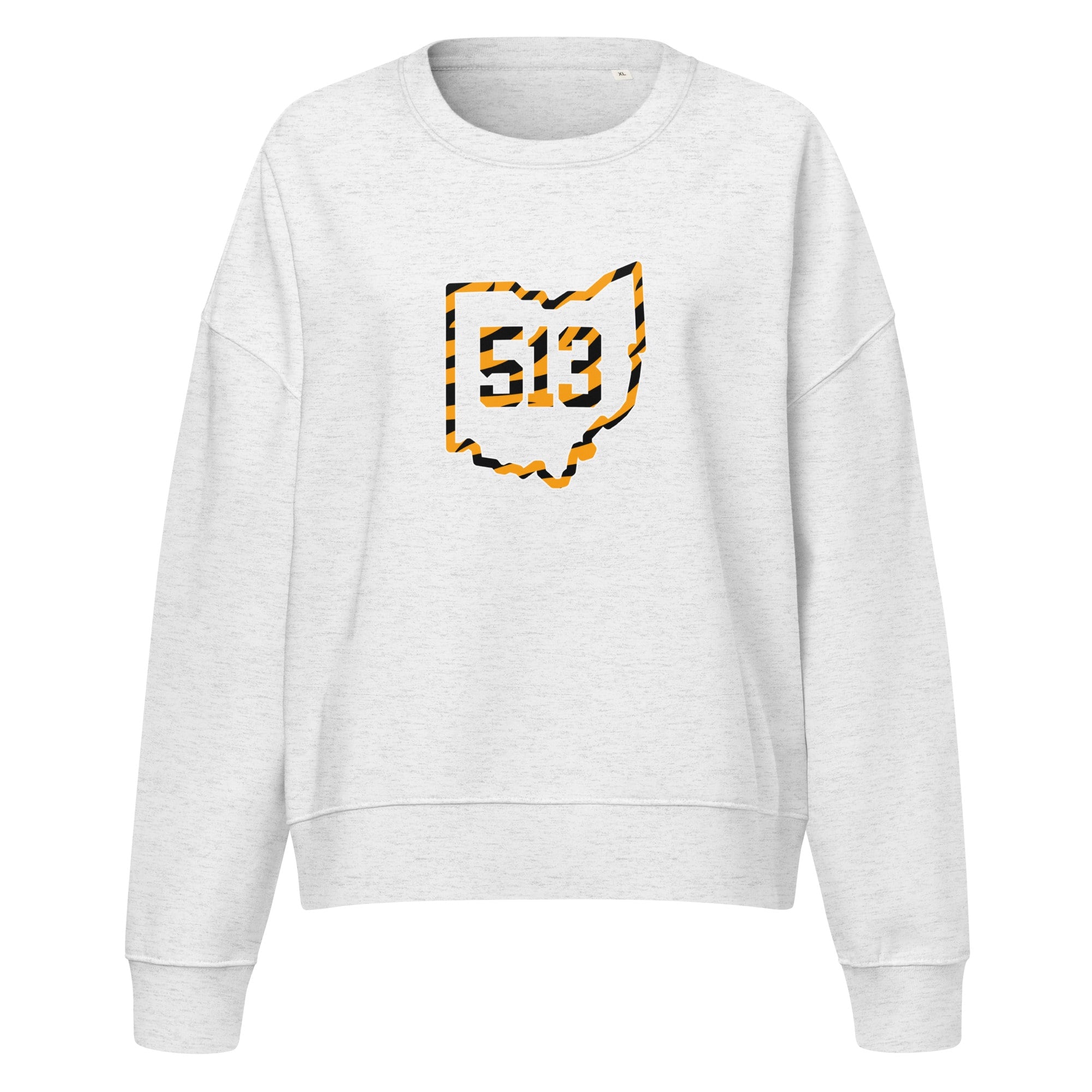 Fierce, bold, and proudly Cincy. The 513 Ohio Tiger Stripe Waist Length Crewneck features a standout tiger-stripe graphic inside the iconic 513 area code—perfect for repping Cincinnati with serious attitude. Made from a soft cotton-blend fleece, it offers a flattering waist length fit with a cozy, lived-in feel.